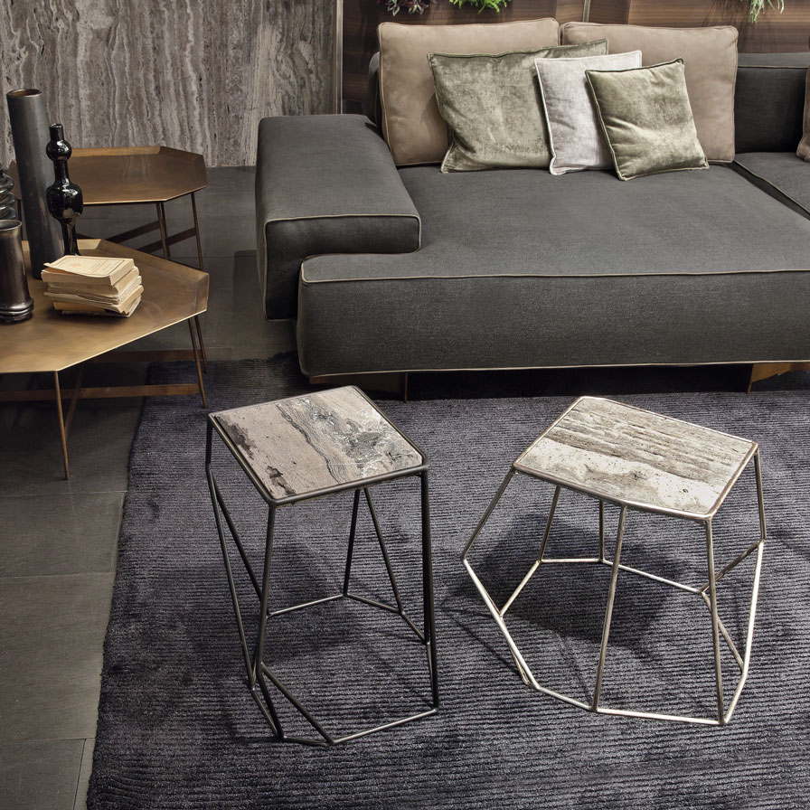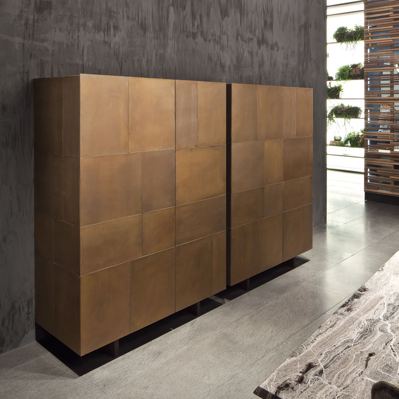 A unique approach – not bound by dependency on industrial production cycles and being slaves to convention – which inseparably links contemporary thought and commitment to innovation and experimentation, creative freedom, and true Italian craftsmanship, beyond any style or fashion. Henge products exude the passion of those who make them, displaying the experience of their hands, the time it took to produce them, and the quality and beauty of the materials they are made from, with all their uniqueness and imperfections. What we choose to put in our homes accompany us for a long period in our life. These things are not objects of consumption, but pieces that have to reflect the pleasure of owning them and using them, accompanying us in the passage of time. For 2015, the world of Henge has been enhanced with new features and new materials including burnished and brushed brass combined with H-Silver®, an antiqued silver based on an original formula, in dialogue with unfinished Titanium stone, resin, wood, natural linen upholstery, warm colours, leather and velvet. A friendly, informal and elegant international company formed by pieces from the craftsman’s mould in which the material and design of the products are at the same time design and decorative elements of the house of Henge.