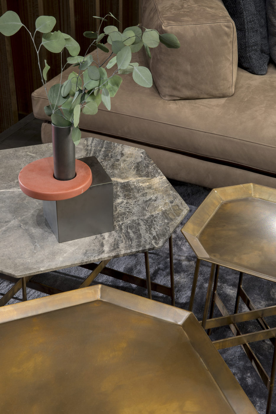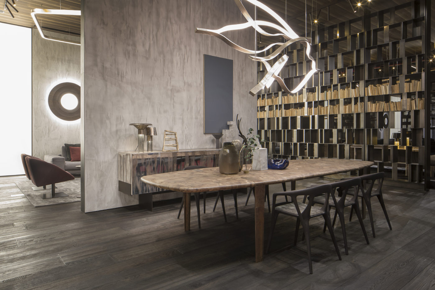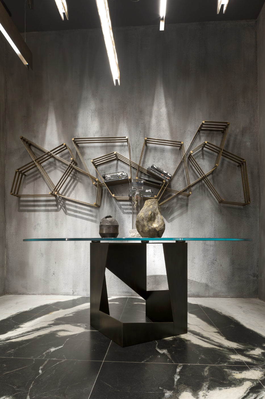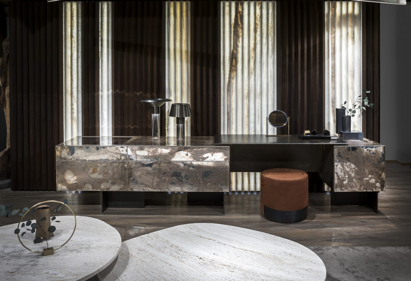The evolution of the identity of the brand, headed by Creative Director Massimo Castagna, shown this year at Salone del Mobile, is oriented towards the research of materials and uniqueness of creations, recoiling from the mere function of furniture, transforming into the manifesto of a cognitive and experimental path dedicated to craftsmanship.