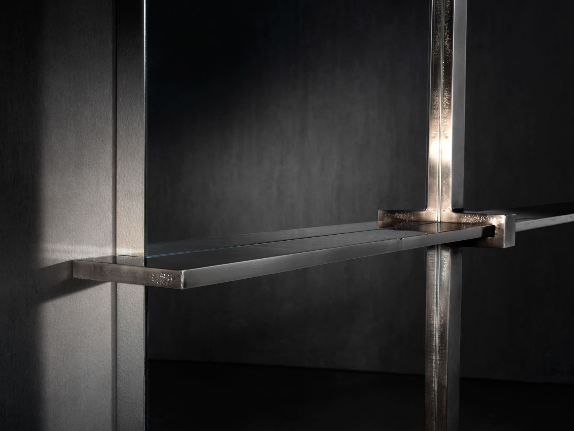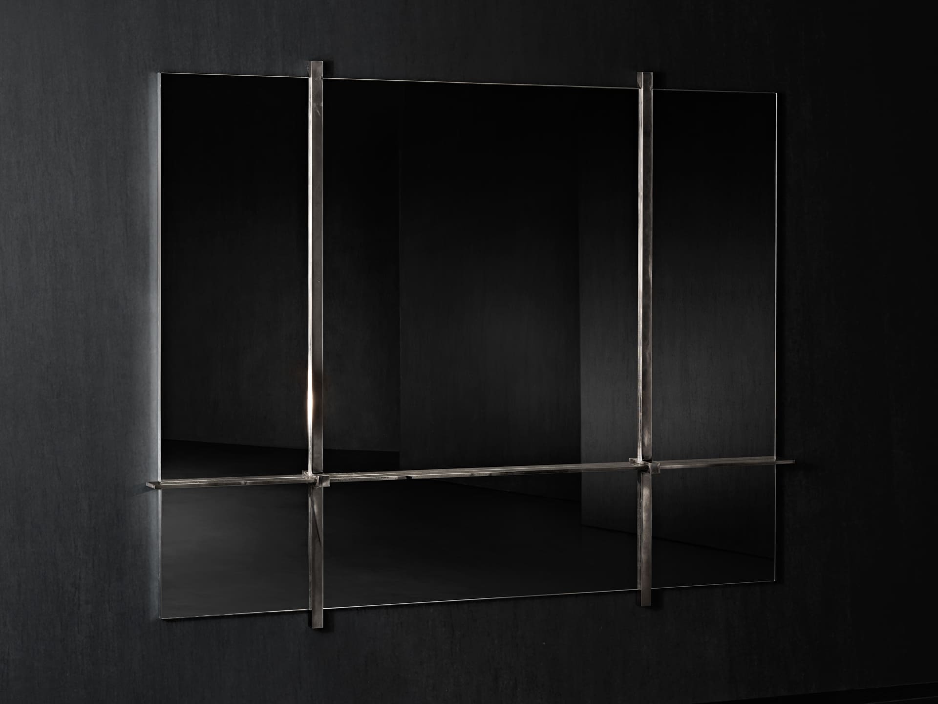 Endless explores the power of essentiality without renouncing refined details: the rigorous geometry of a full-length mirror, held up by a minimalist, slender sand cast graphic support generates a piece of appealing, expressive purity.