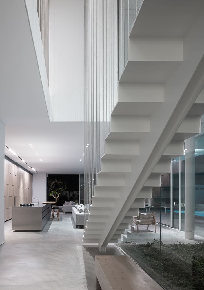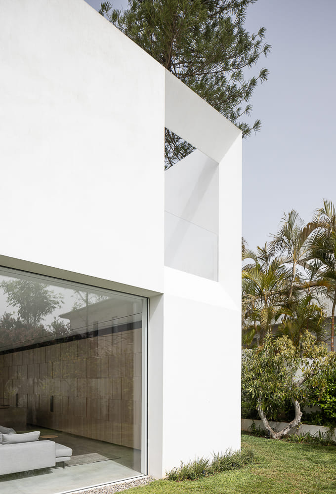 The clean geometry of the sculptural volume with deep cut-outs offers not only the relaxing private intimacy of a cozy shelter but comfortable intermediate, shaded and airy filter terraces, protecting from the hot Israeli climate and bright sunlight.