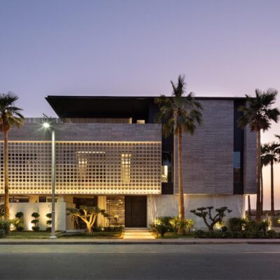 Designed by the multi-award-winning South African architecture firm SAOTA, the building, while maintaining the consistency of its compositional style, communicated in a language of timeless minimalism, presents a more compact arrival facade, combined with a protective, perforated pattern, in contrast with the side overlooking the beach, with expansive glazing and moveable screens, appropriately protecting from the bright maritime light but enabling, at the same time, to embrace and enjoy the amazing surrounding natural contest.